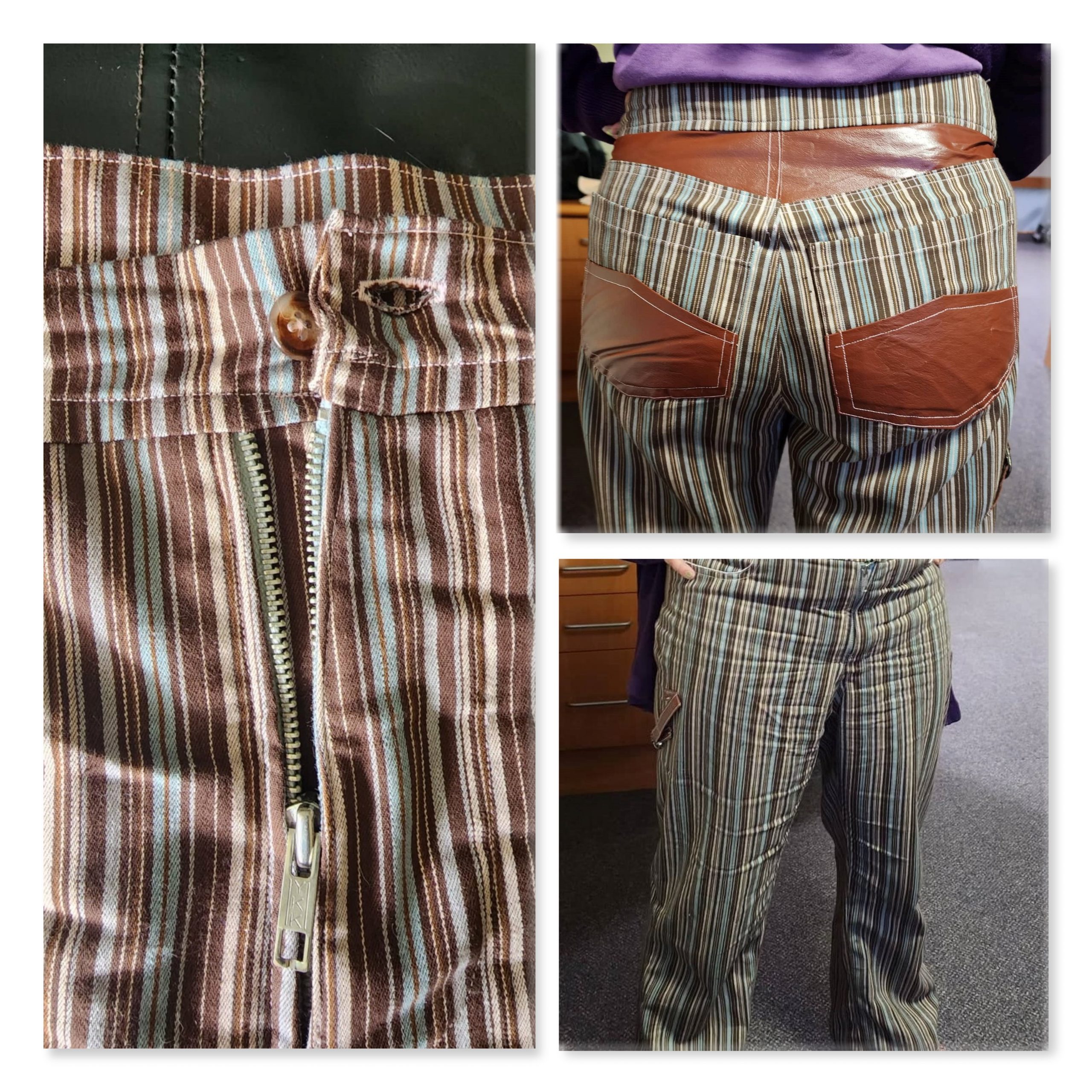 The final challenge was something I’d until now avoided – the buttonhole. Now was the time to put my fear of the complicated-looking buttonhole foot aside and finally learn to use it. I did a couple of practise holes before taking the machine to my precious pants, and succeeded on the second try. Even the button matches well!